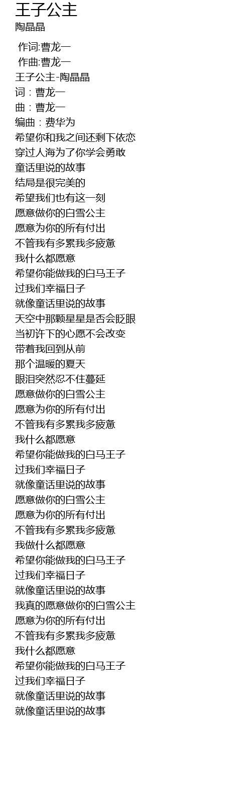 | [03:27.432] | 我真的愿意做你的白雪公主 |