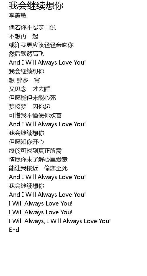 | [04:13.73] | I Will Always, I Will Always Love You! |