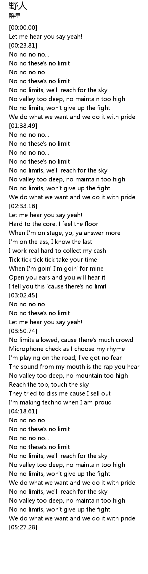 | [04:05.42] | No limits allowed, cause there's much crowd |