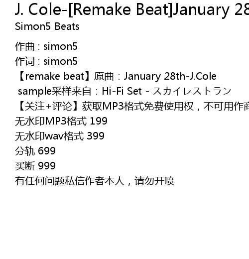 | Song | J. Cole-[Remake Beat]January 28th(simon5 remix) |