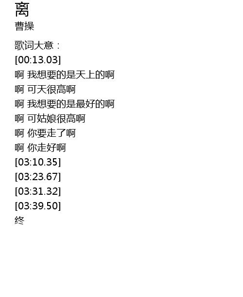 | [00:15.03] | 啊 我想要的是天上的啊 |