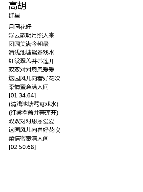 | [01:58.67] | (清浅池塘鸳鸯戏水) |