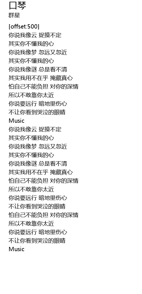 | [00:50.17] | 你说我像谜 总是看不清 |