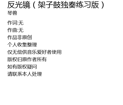 | Song | 反光镜(架子鼓独奏练习版) |