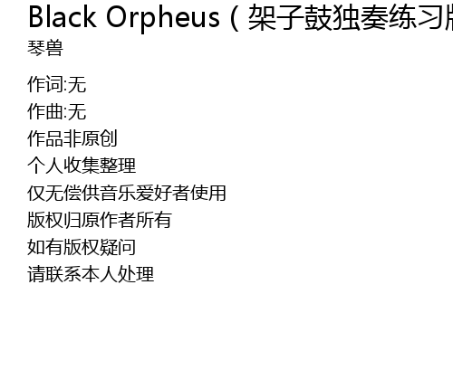 | Song | Black Orpheus(架子鼓独奏练习版) |