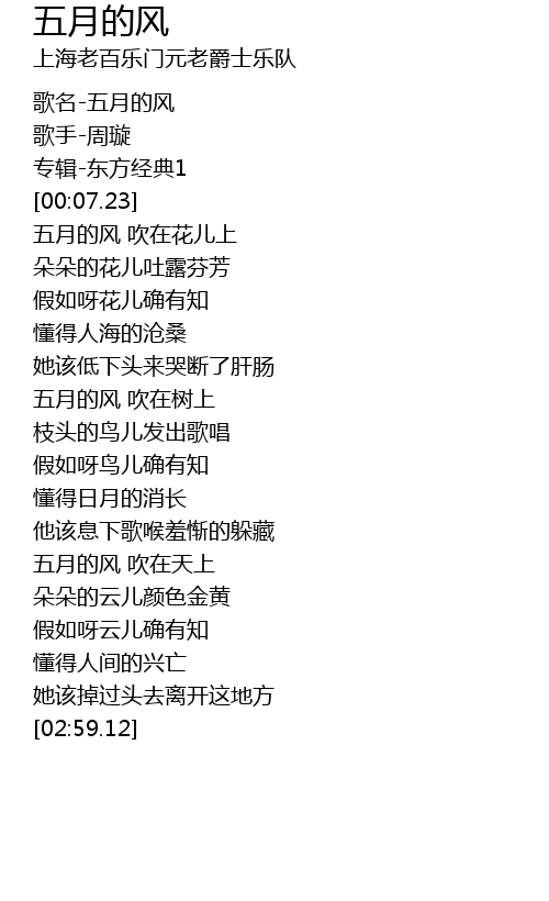 | [02:03.91] | 五月的风 吹在天上 |