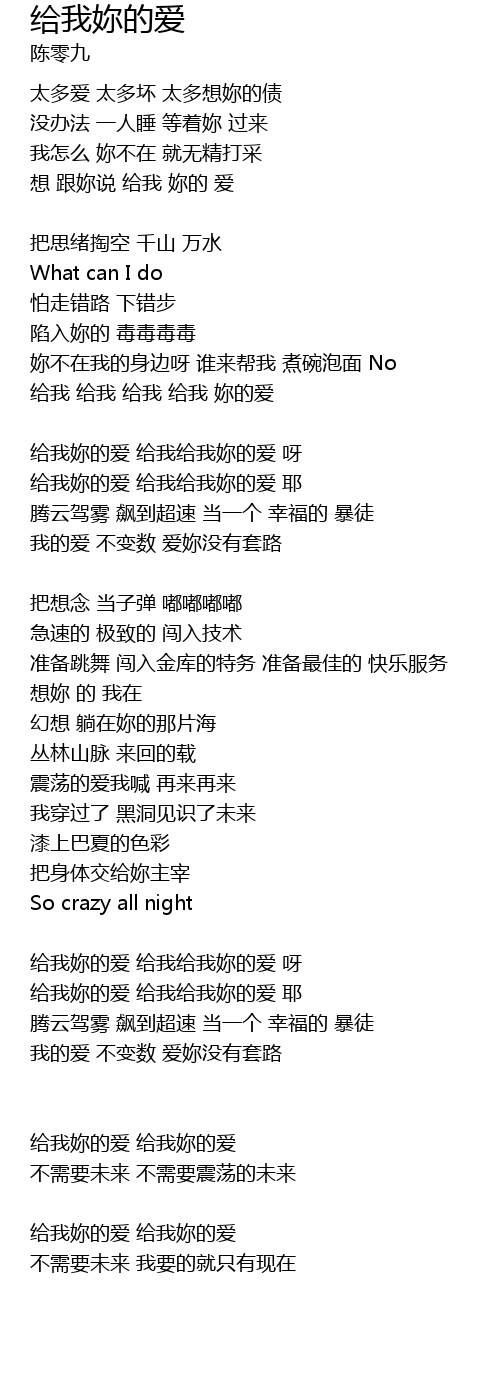 | 给我妳的爱 给我给我妳的爱 呀 | |