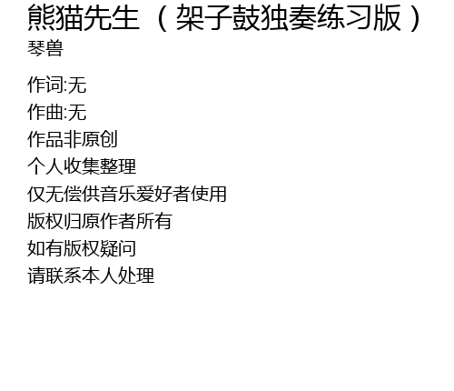 | Song | 熊猫先生 (架子鼓独奏练习版) |
