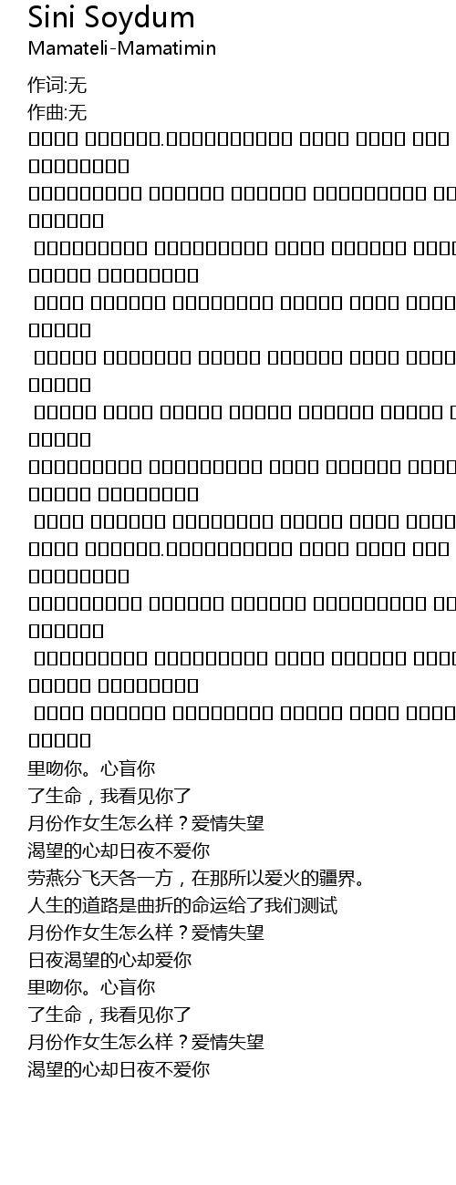 | كىچە كۈندۈز يۈرەكلەر تەشنا سىنى سۆيدۈم ئەمەس | |