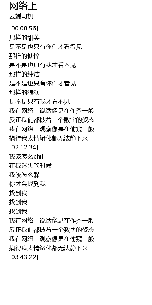 | [03:06.16] | 反正我们都披着一个数字的姿态 |