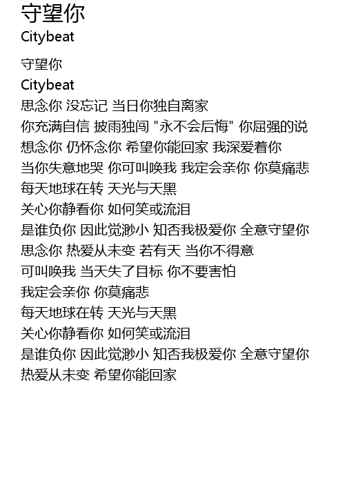 | [00:53.00] | 想念你 仍怀念你 希望你能回家 我深爱着你 |
