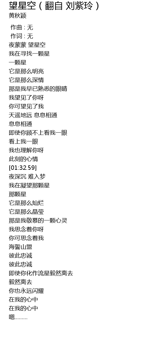 | [01:56.28] | wǒ zài níng wàng nà kē xīng |