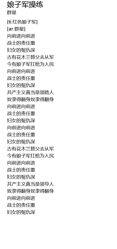 | [01:14.648] | 今有娘子军扛枪为人民 |