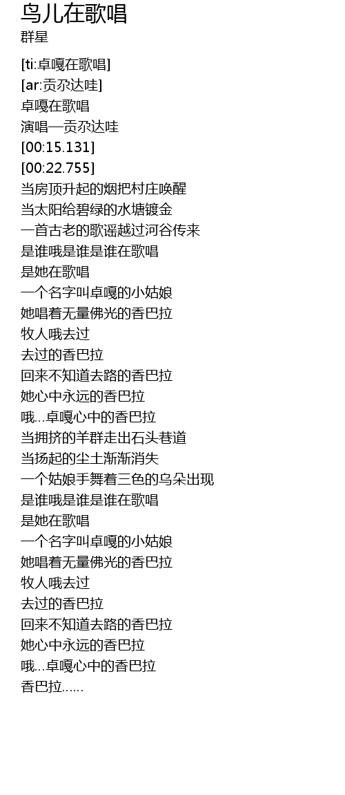 | [03:03.291] | 一个名字叫卓嘎的小姑娘 |