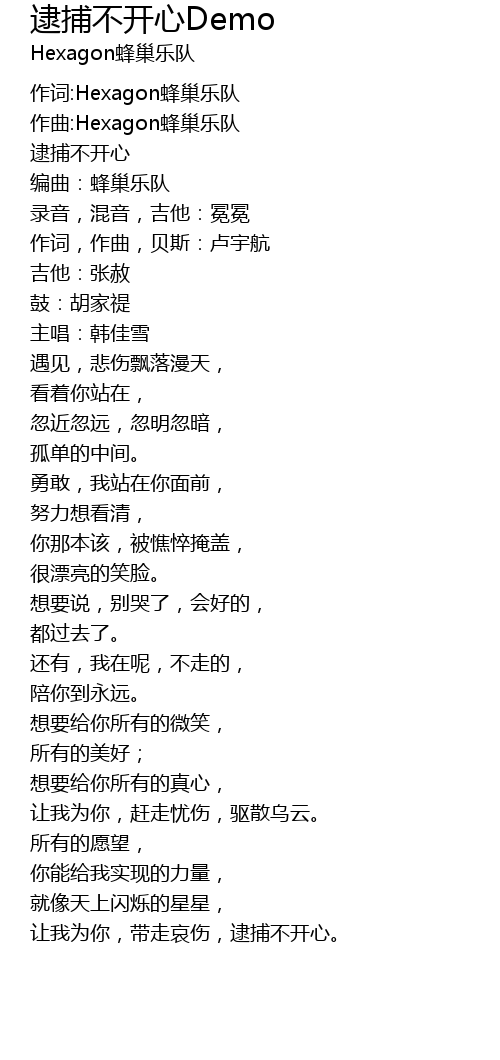 | 作词:Hexagon蜂巢乐队 | |