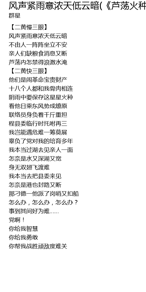 | Song | 风声紧雨意浓天低云暗(《芦荡火种》) |