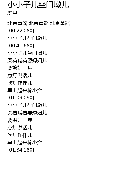 | [01:15.510] | 小小子儿坐门墩儿 |