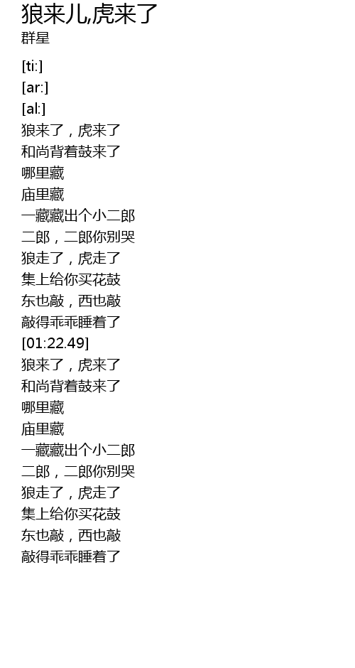 | [00:58.81] | láng zǒu le, hǔ zǒu le |