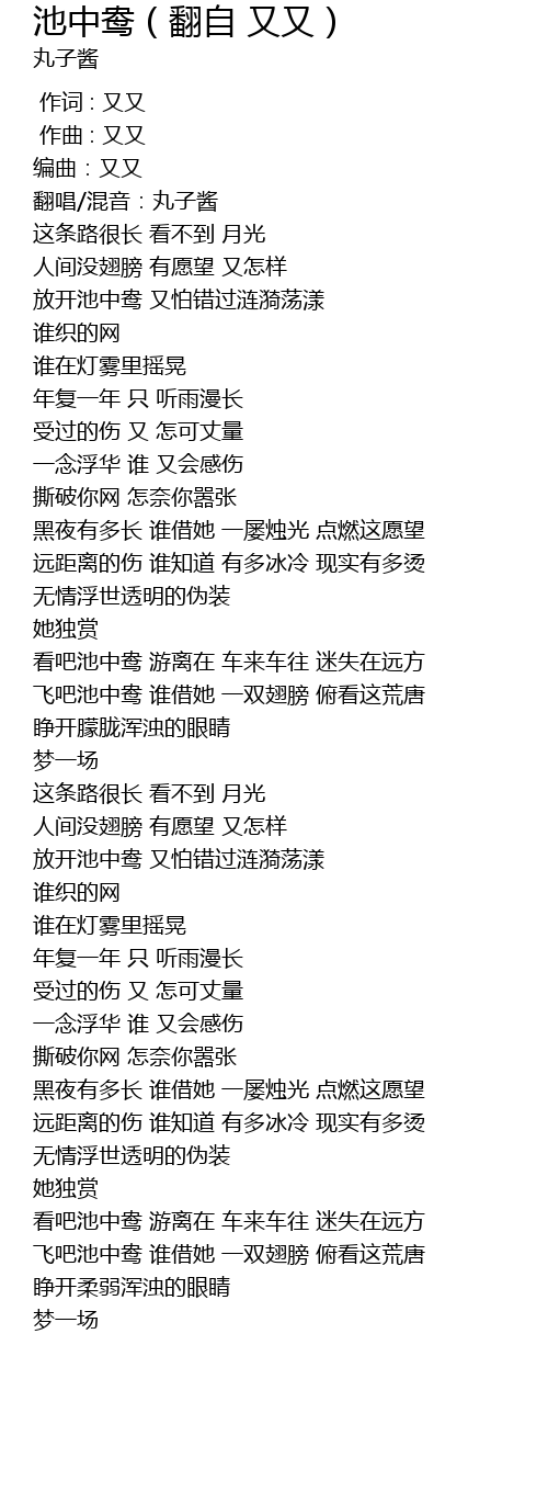 | [04:43.955] | 翻唱/混音:丸子酱 |