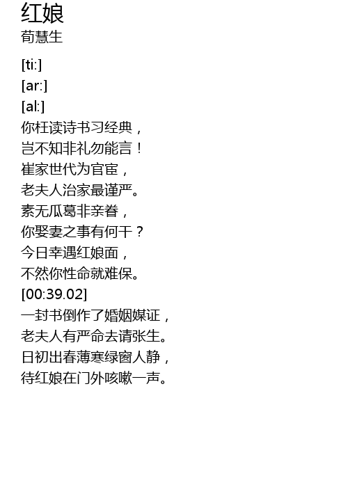 | [00:46.01] | 一封书倒作了婚姻媒证, |