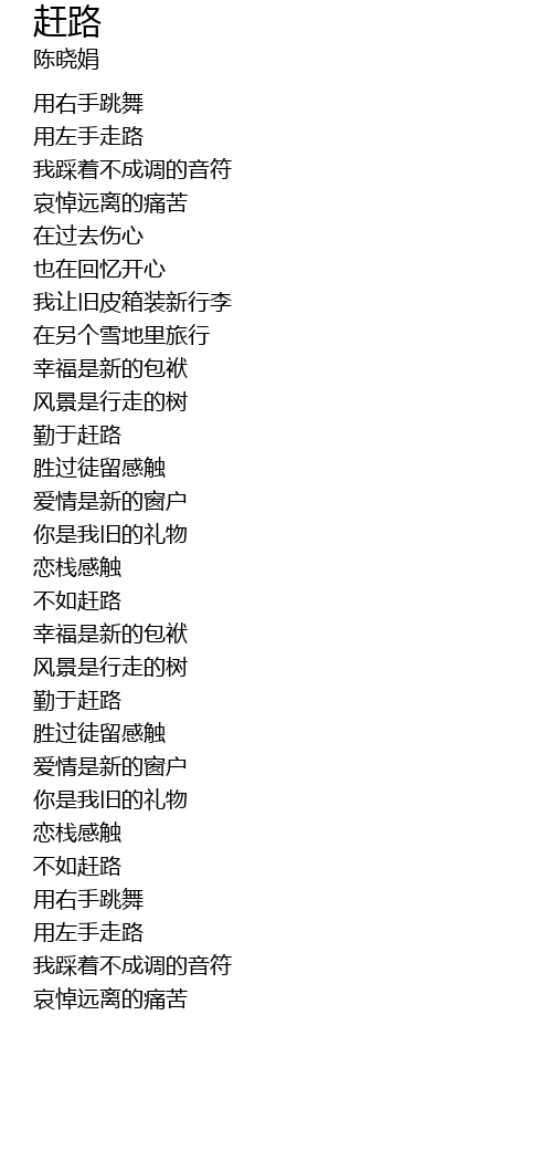 | [01:04.900] | 不如赶路 |