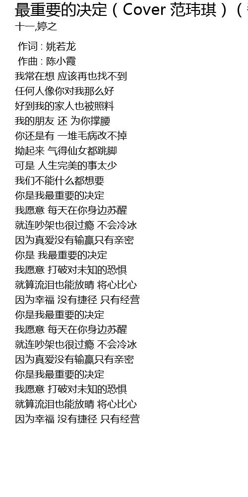 | [03:12.472] | nǐ shì wǒ zuì zhòng yào de jué dìng |