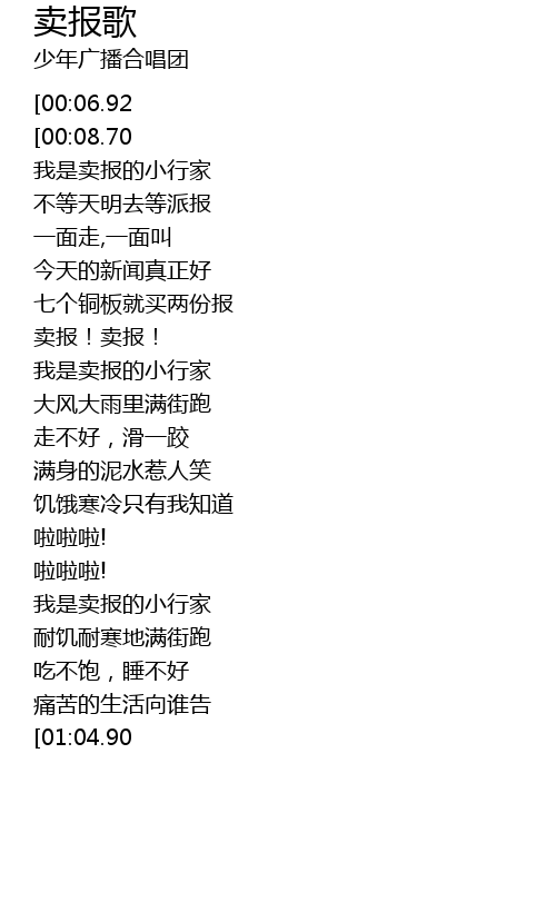 | [00:49.69] | wǒ shì mài bào de xiǎo háng jiā |