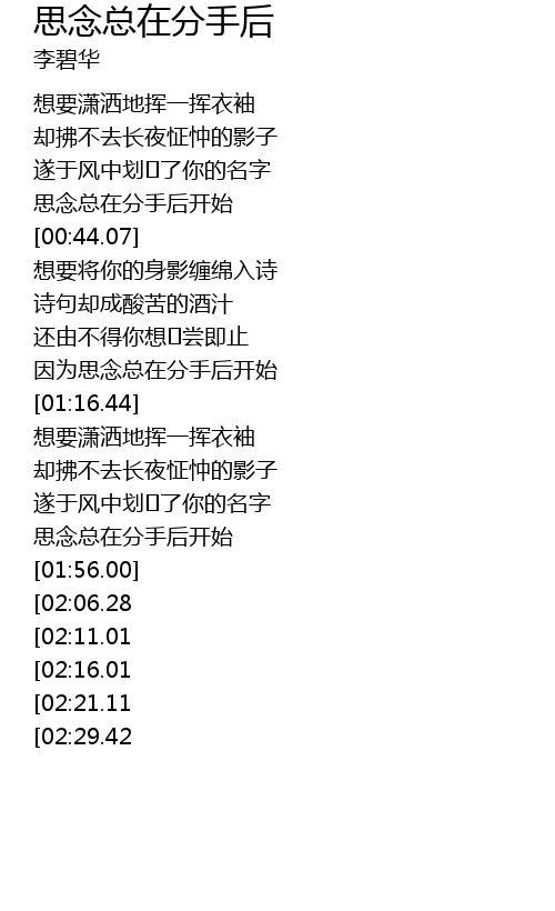 | [03:01.05][02:21.11] | 因为思念总在分手后开始 |