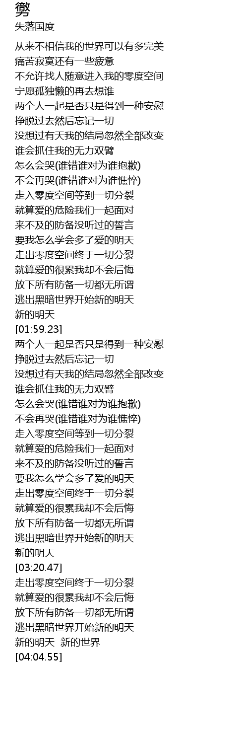 | [03:32.39] | 走出零度空间终于一切分裂 |