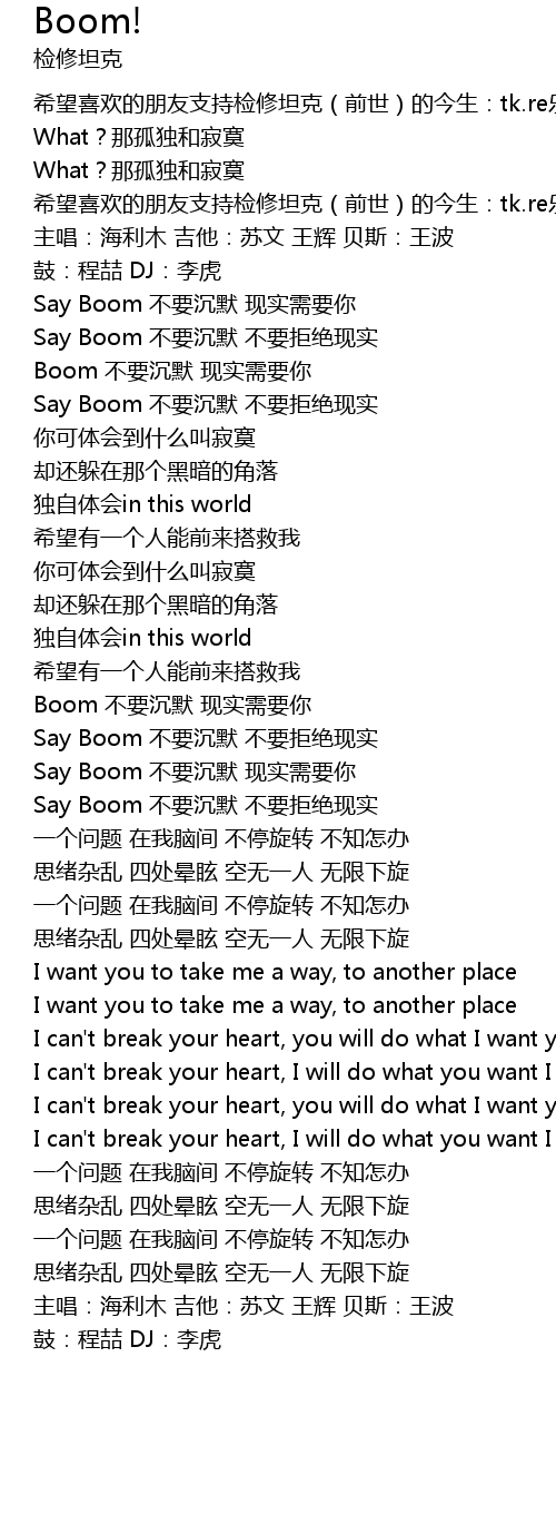 | [00:38.000] | Say Boom 不要沉默 不要拒绝现实 |