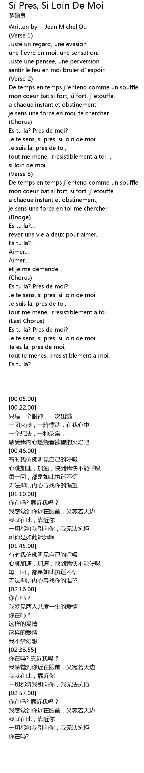 | [03:03.00] | Je te sens, si pres, si loin de moi. |