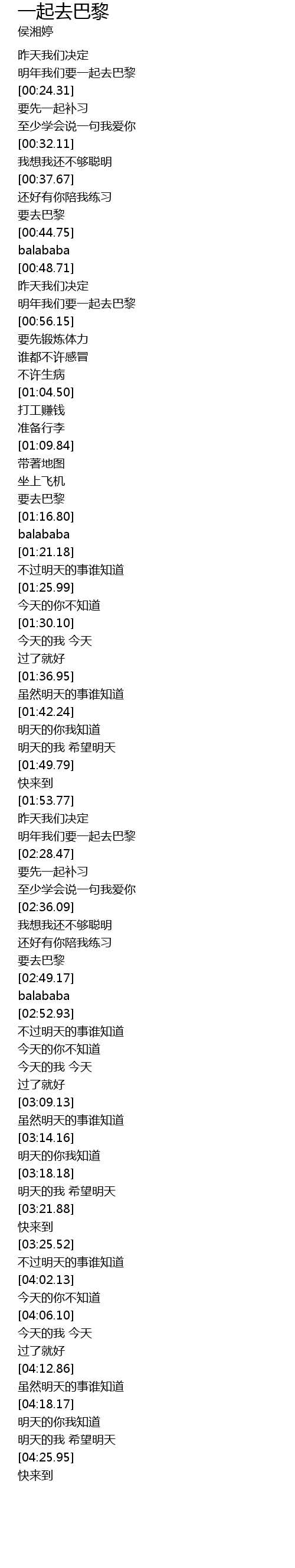 | [00:20.55] | 明年我们要一起去巴黎 |