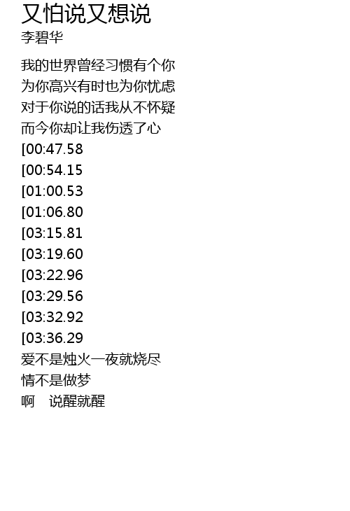 | [03:42.85][03:15.81][02:33.07][01:13.33] | 又怕说又想说 |