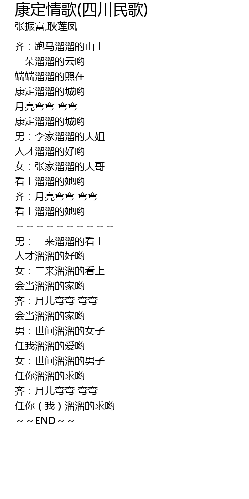 | [00:41.29] | 康定溜溜的城哟 |