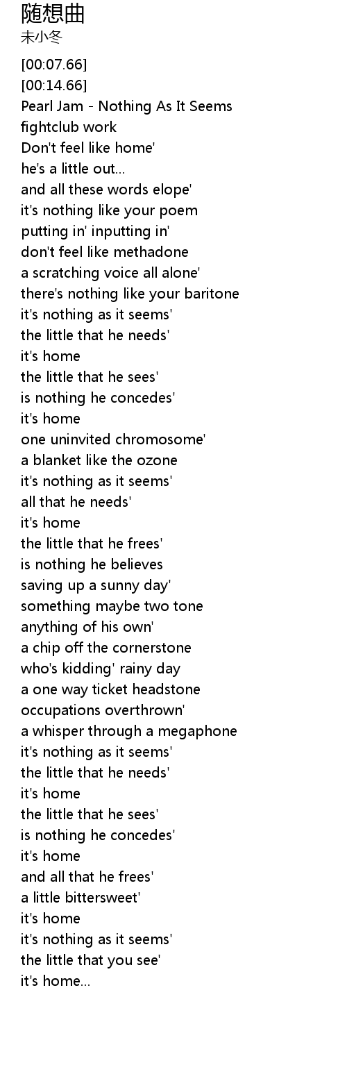 | [00:01.68] | Pearl Jam - Nothing As It Seems |