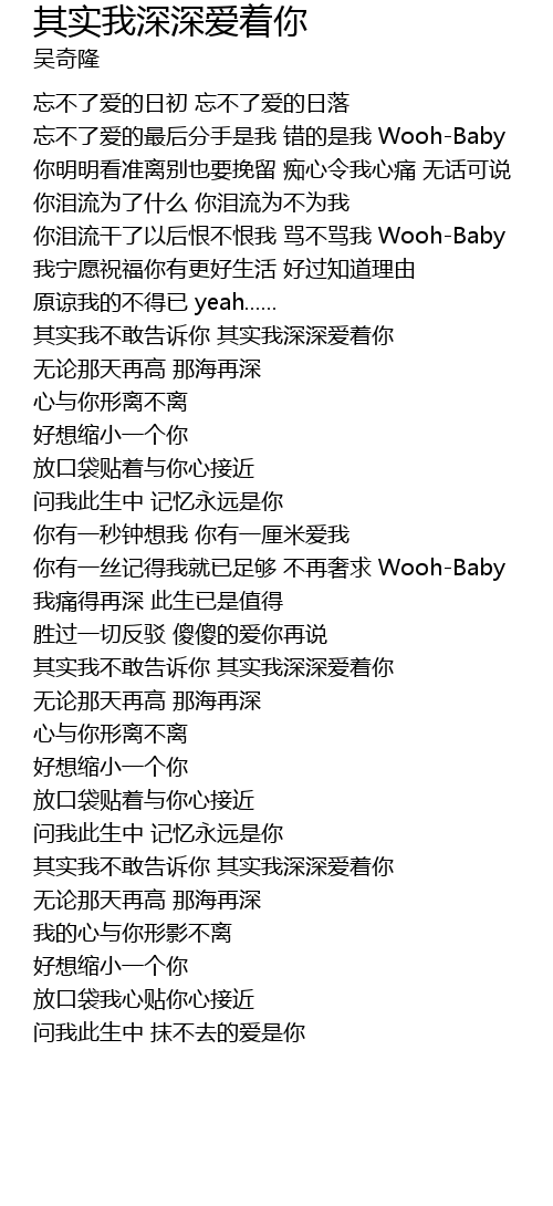 | [02:55.000] | 其实我不敢告诉你 其实我深深爱着你 |