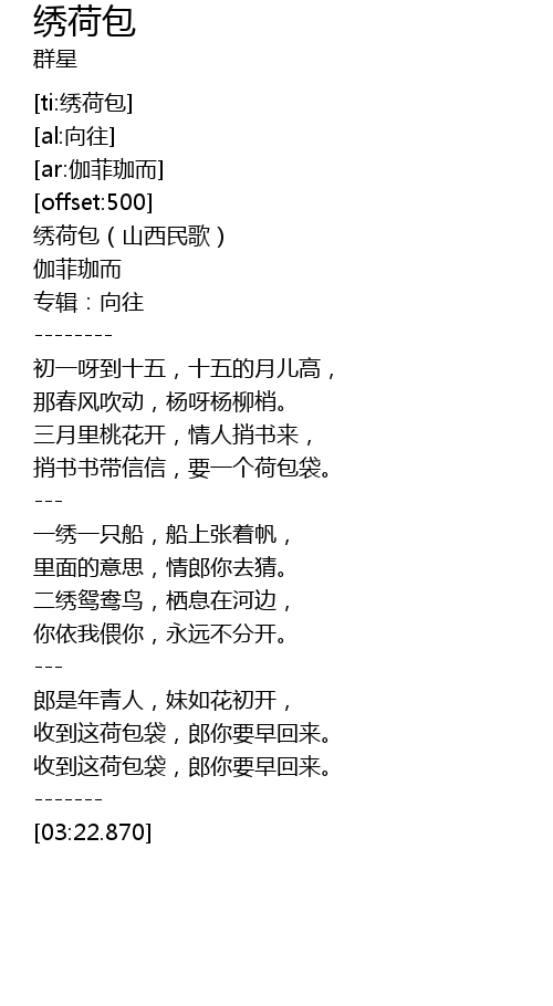 | [00:00.00] | 绣荷包(山西民歌) |