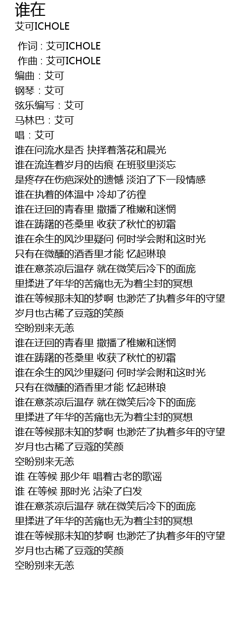 | [00:01.000] | zuo ci : ai ke ICHOLE |