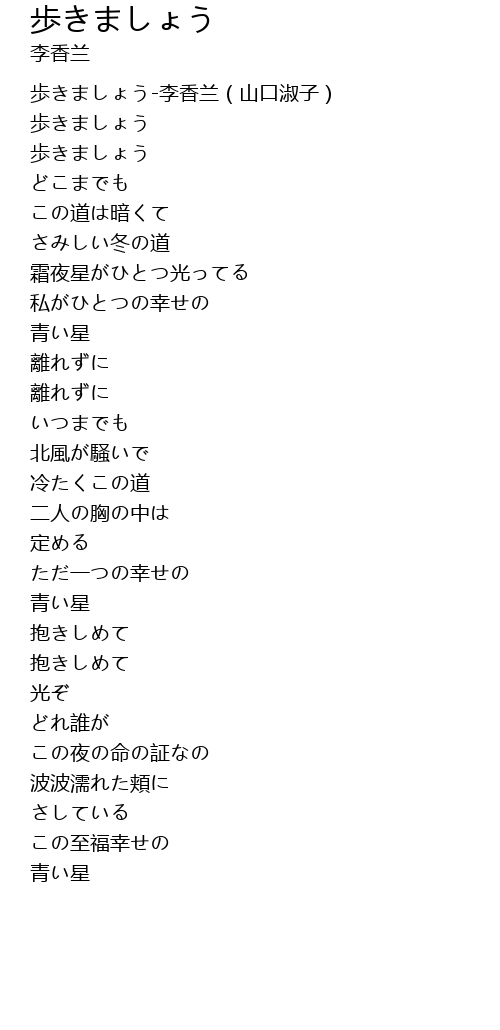 | [00:00.598] | 歩きましょう-李香兰(山口淑子) |