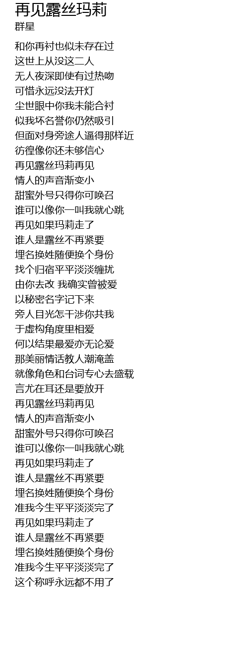 | Song | 再见露丝玛莉 |