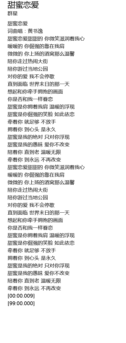 | [00:16.54] | tian mi lian ai tian tian de ni wei xiao zi run zhe wo xin |