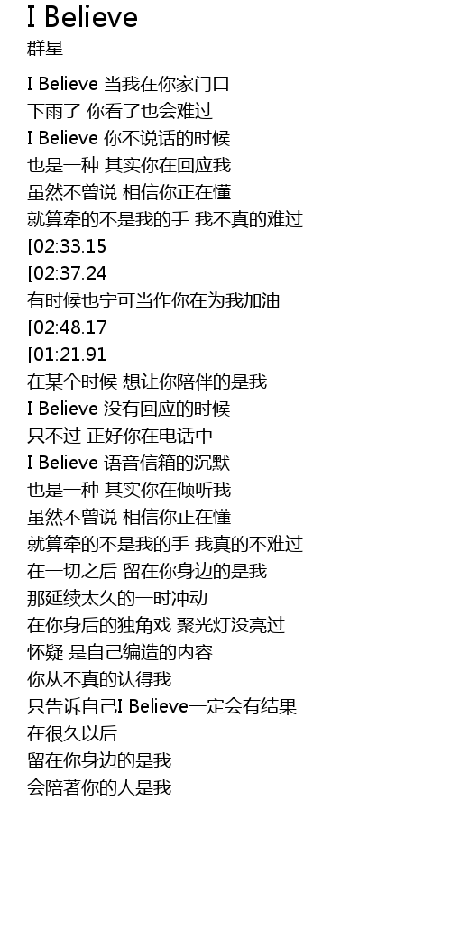 | [02:52.62][01:21.91] | 只告诉自己I Believe你总会看到我 |