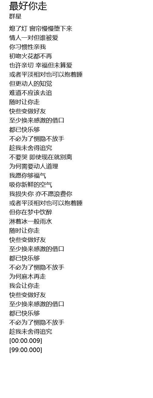 | [00:56.52] | suí shí ràng nǐ zǒu |