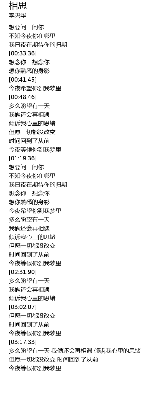 | [00:33.87] | 想念你 想念你 |