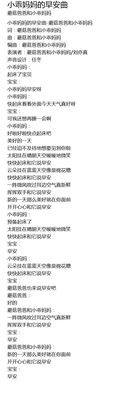 | [00:00.194] | 小乖妈妈的早安曲-蘑菇爸爸和小乖妈妈 |