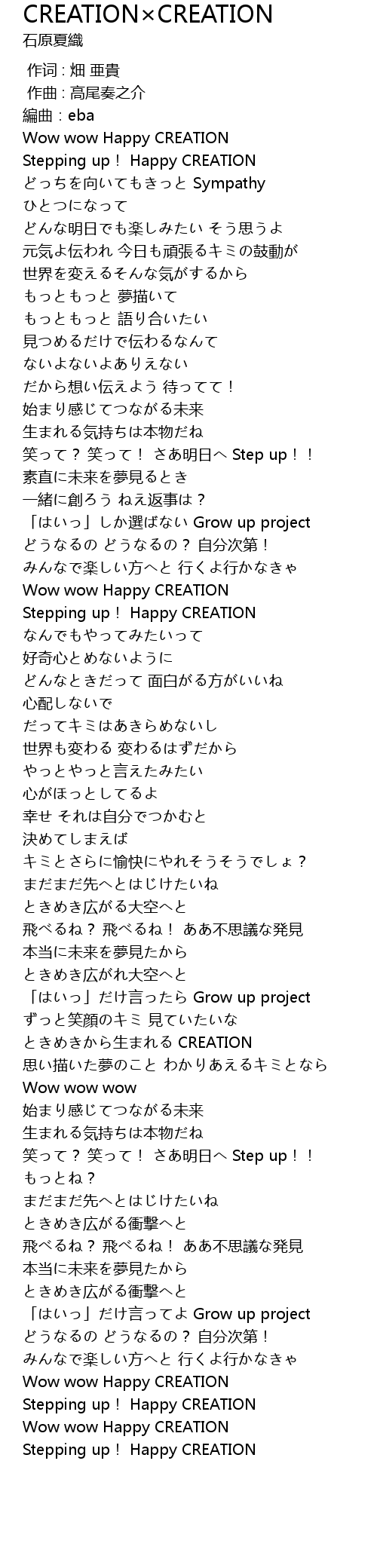 | [04:00.92] | Stepping up! Happy CREATION |