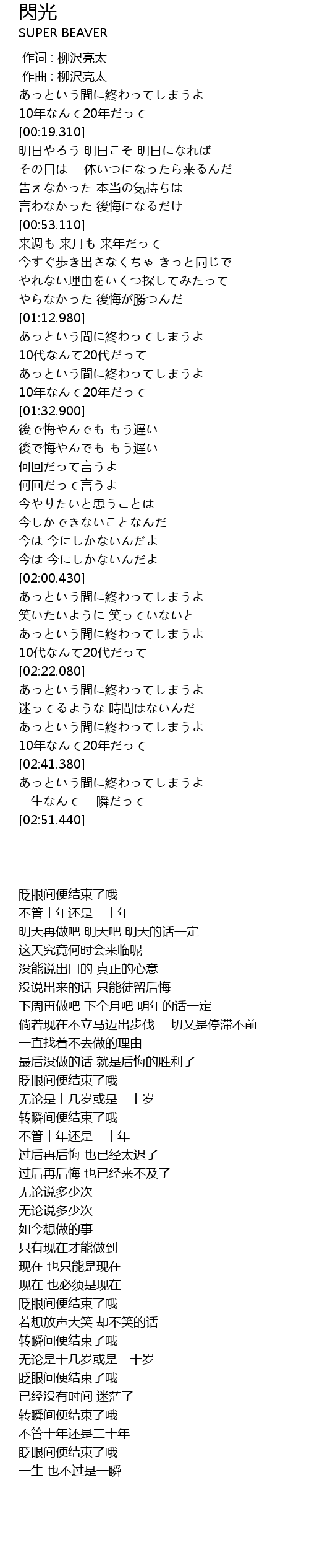 | [00:00.430] | 作词 : 柳沢亮太 |