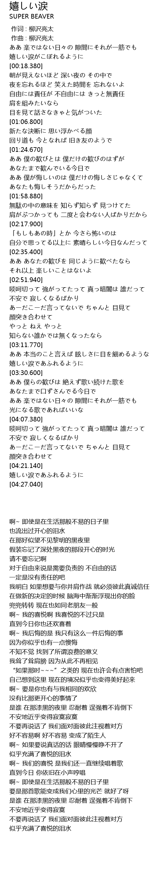 | [00:00.700] | 作词 : 柳沢亮太 |