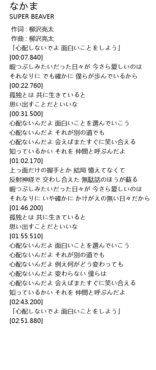 | [00:01.050] | 「心配しないでよ 面白いことをしよう」 |