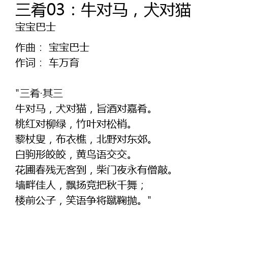 | 牛对马,犬对猫,旨酒对嘉肴。 | |